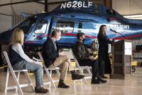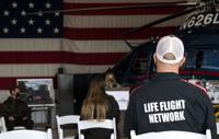 A Life Flight Network employee attends a press conference announcing a partnership between Life Flight and Bozeman Health on Friday, March 19, 2021, at the Life Flight Network Bozeman Hangar.