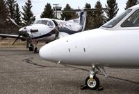 A Pilatus PC-12 and Citation CJ4 are parked outside the Life Flight Network hangar during a press conference to announce a partnership between Life Flight Network and Bozeman Health on Friday, March 19, 2021.